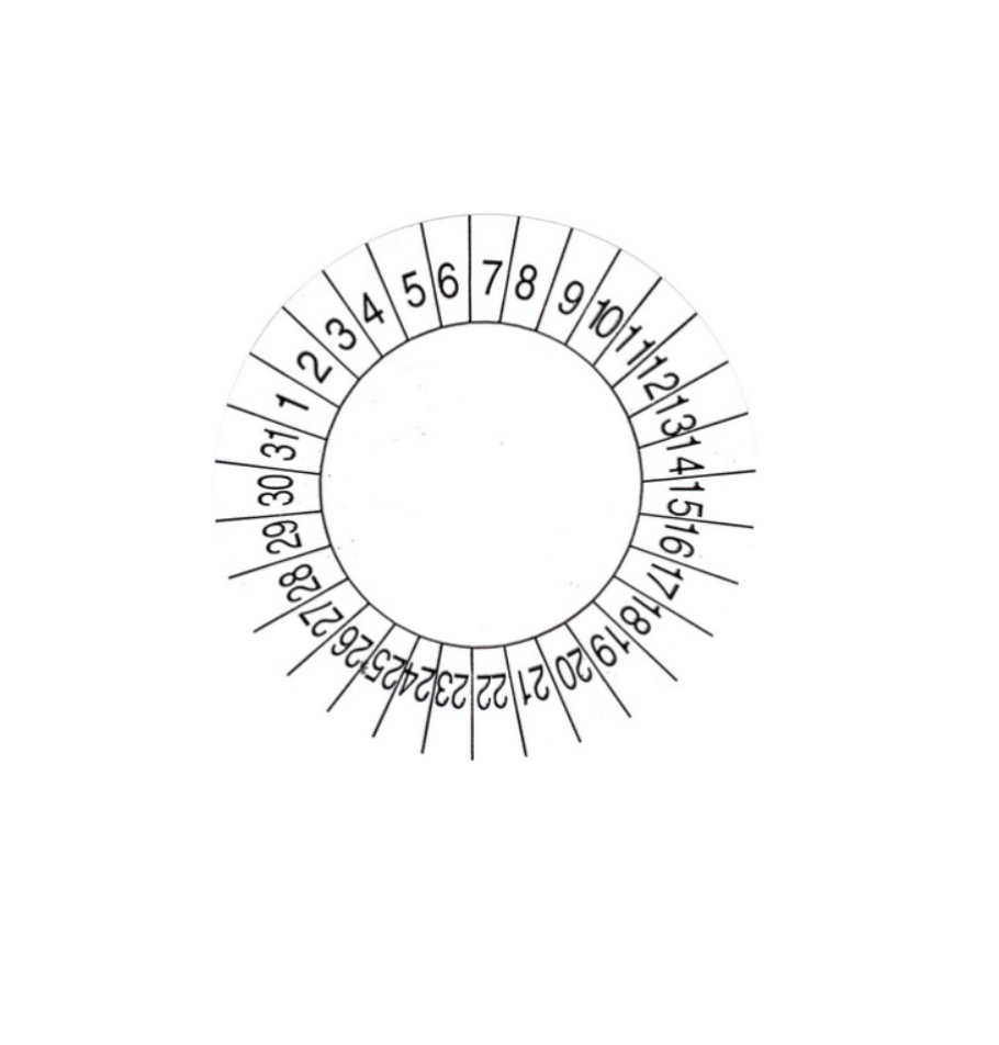 Startseite » Prüfplaketten » Tagesprüfplaketten » 10x Prüfplaketten selbstklebend Prüfsiegel Tagesmarken Tageskranz 1-31.Tag | Ø 3mm