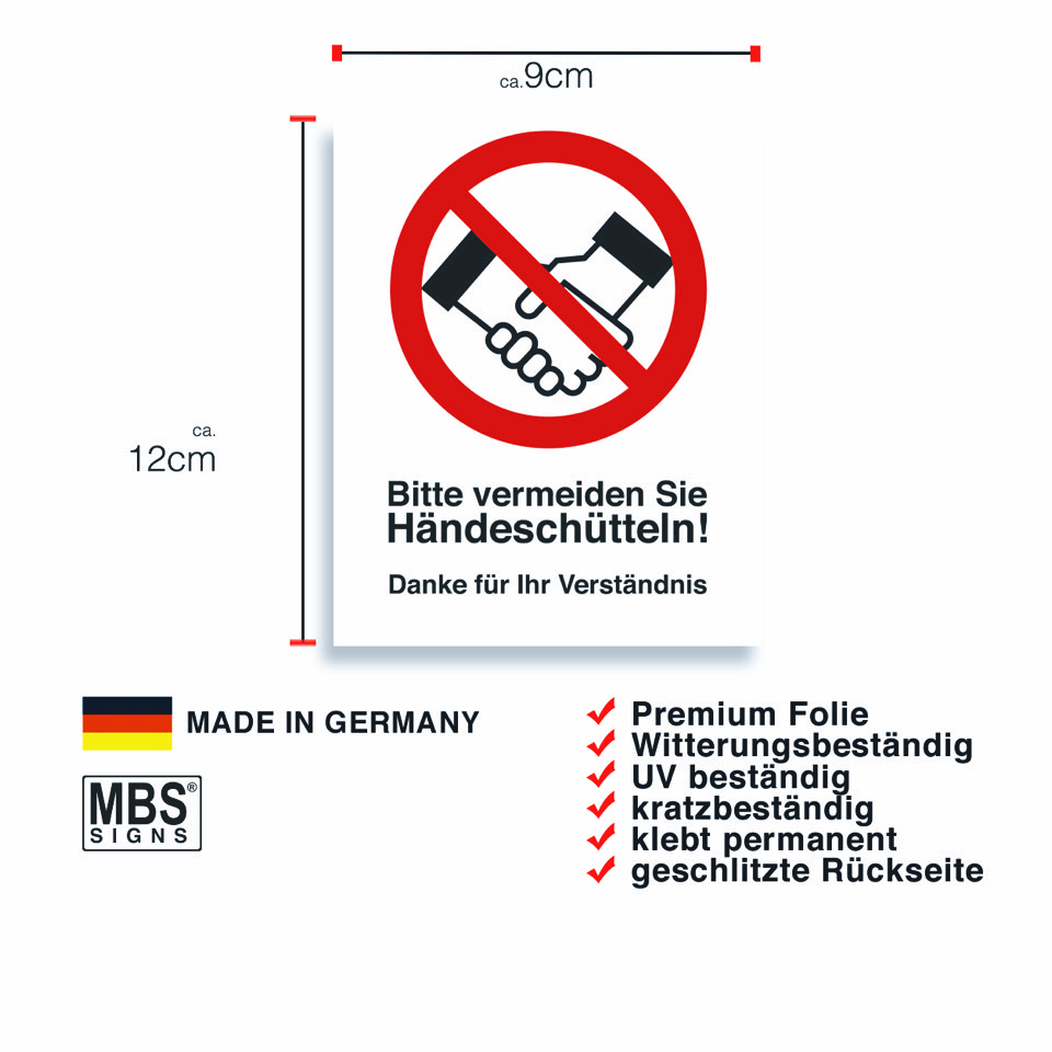 10x Warnaufkleber „Bitte vermeiden Sie Händeschütteln“ Hinweis Etikett | 12x9 cm