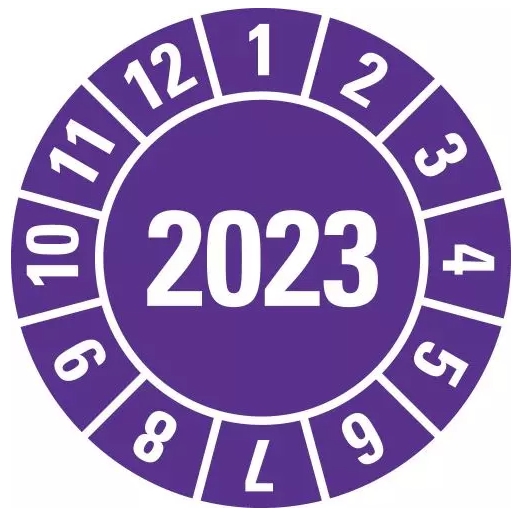 Startseite » Prüfplaketten » Prüfplaketten ab 2023 » 25x Jahresprüfplakette „2023“ Etikett Aufkleber, violett | Ø 15-40 mm