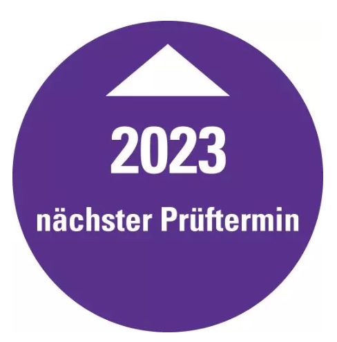 Startseite » Prüfplaketten » Prüfplaketten ab 2023 » 25x Systemprüfplakette „Nächster Prüftermin 2023“ Etikett Aufkleber, violett | Ø 15-40 mm
