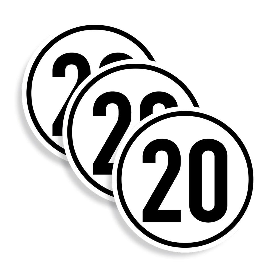 Startseite » Aufkleber / Folien / Schilder » Verkehrszeichen » 3x Aufkleber Geschwindigkeits-Etikett „20 km/h“ Folie | Größe wählbar