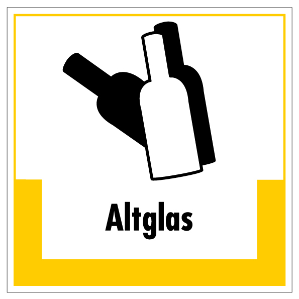 Aufkleber Abfallkennzeichnung „Altglas“ Recycling Etikett, gelb | Größe wählbar