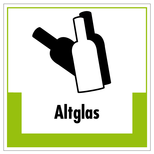 Aufkleber Abfallkennzeichnung „Altglas“ Recycling Etikett, grün | Größe wählbar