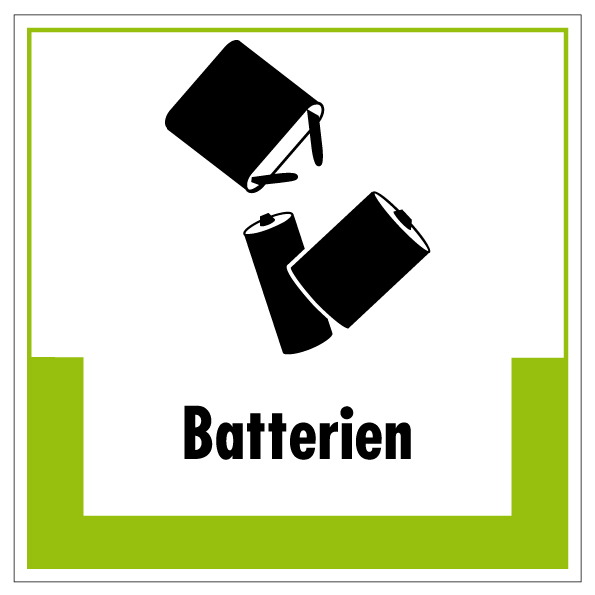 Aufkleber Abfallkennzeichnung „Batterien“ Recycling Etikett, grün | Größe wählbar