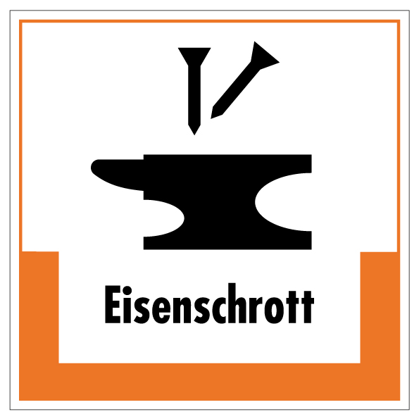 Aufkleber Abfallkennzeichnung „Eisenschrott“ Recyling Etikett, orange | Größe wählbar
