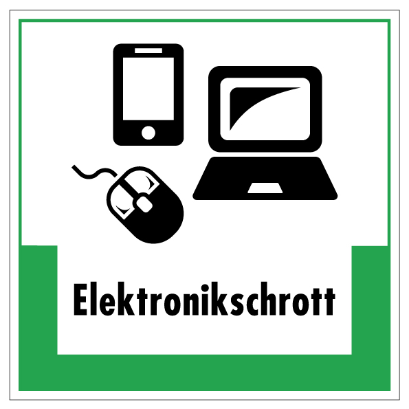 Startseite » Aufkleber / Folien / Schilder » Sonstige Aufkleber und Schilder » Abfallkennzeichnung » Aufkleber Abfallkennzeichnung „Elektronikschrott“ Etikett, grün | Größe wählbar