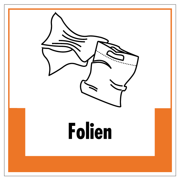 Aufkleber Abfallkennzeichnung „Folien“ Recyling Etikett, orange | Größe wählbar