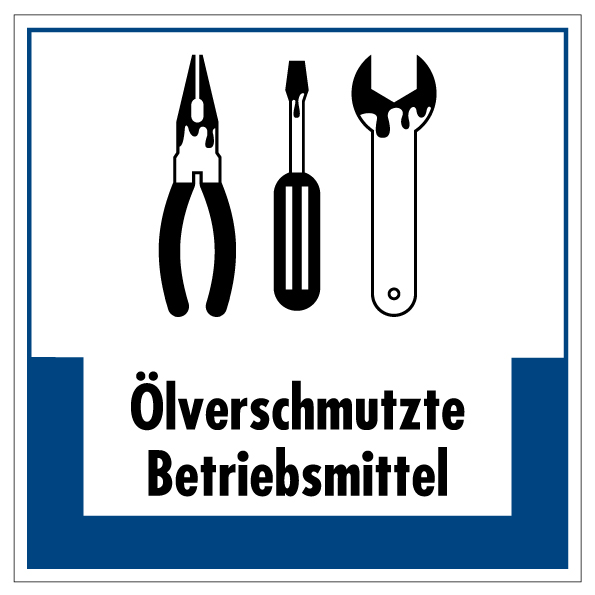Startseite » Aufkleber / Folien / Schilder » Sonstige Aufkleber und Schilder » Abfallkennzeichnung » Aufkleber Abfallkennzeichnung „Ölvers. Betriebsmittel“ Etikett, blau | Größe wählbar