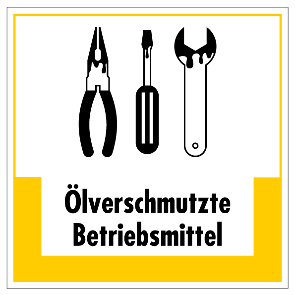 Startseite » Aufkleber / Folien / Schilder » Sonstige Aufkleber und Schilder » Abfallkennzeichnung » Aufkleber Abfallkennzeichnung „Ölvers. Betriebsmittel“ Etikett, gelb | Größe wählbar