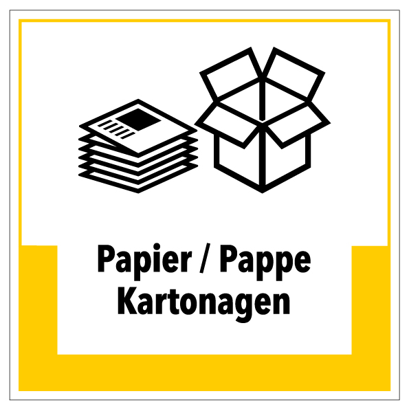 Startseite » Aufkleber / Folien / Schilder » Sonstige Aufkleber und Schilder » Abfallkennzeichnung » Aufkleber Abfallkennzeichnung „Papier/Pappe Kartonagen“ Etikett, gelb | Größe wählbar