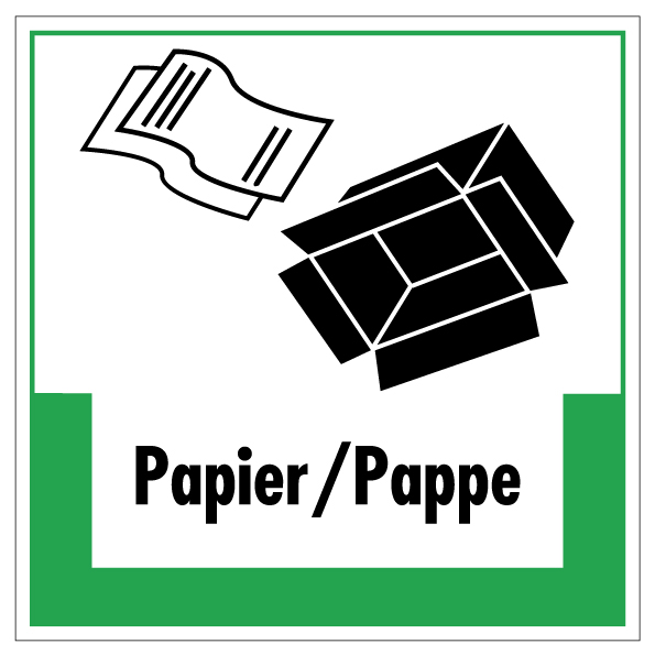 Aufkleber Abfallkennzeichnung „Papier/Pappe“ Recycling Etikett, grün | Größe wählbar