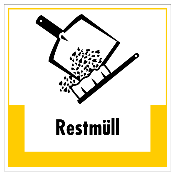 Startseite » Aufkleber / Folien / Schilder » Sonstige Aufkleber und Schilder » Abfallkennzeichnung » Aufkleber Abfallkennzeichnung „Restmüll“ Recycling Etikett, gelb | Größe wählbar