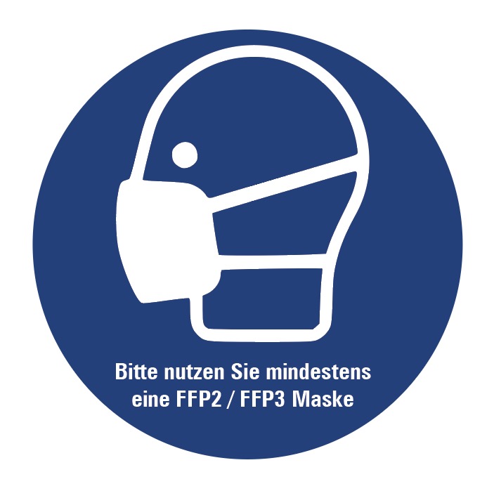 Aufkleber „Bitte nutzen Sie eine FFP-Maske“ ISO 7010 Etikett, blau | Größe wählbar