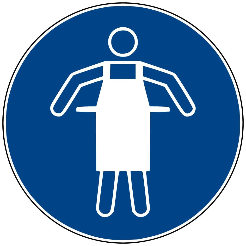 Startseite » Aufkleber / Folien / Schilder » Gebotszeichen und -aufkleber » Aufkleber Gebotsschild „Schutzschürze benutzen“ Folie ISO 7010, blau | Größe wählbar