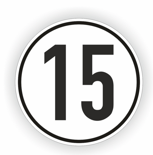 Startseite » Aufkleber / Folien / Schilder » Verkehrszeichen » Aufkleber Geschwindigkeits-Etikett „15 km/h“ Folie | Größe wählbar