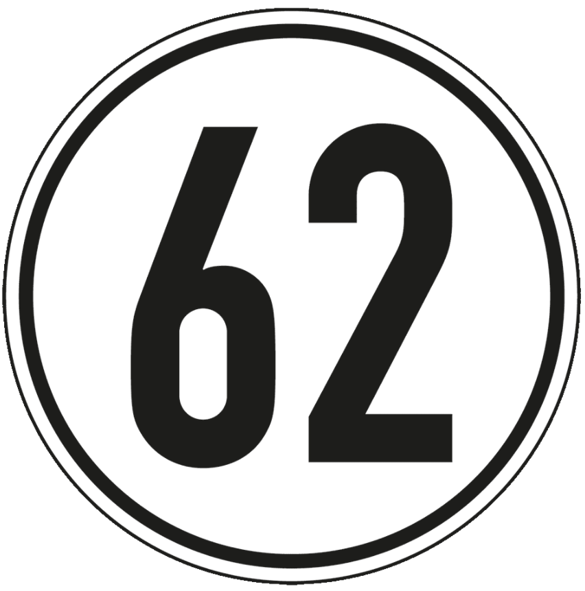 Startseite » Aufkleber / Folien / Schilder » Verkehrszeichen » Aufkleber Geschwindigkeits-Etikett „62 km/h“ Folie | Größe wählbar