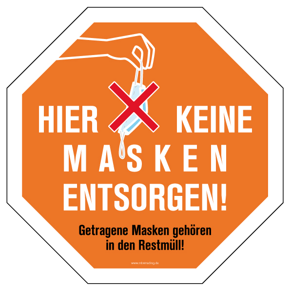 Startseite » Aufkleber Hinweis „Hier keine Masken entsorgen“ Etikett Oktagon, orange | Größe wählbar