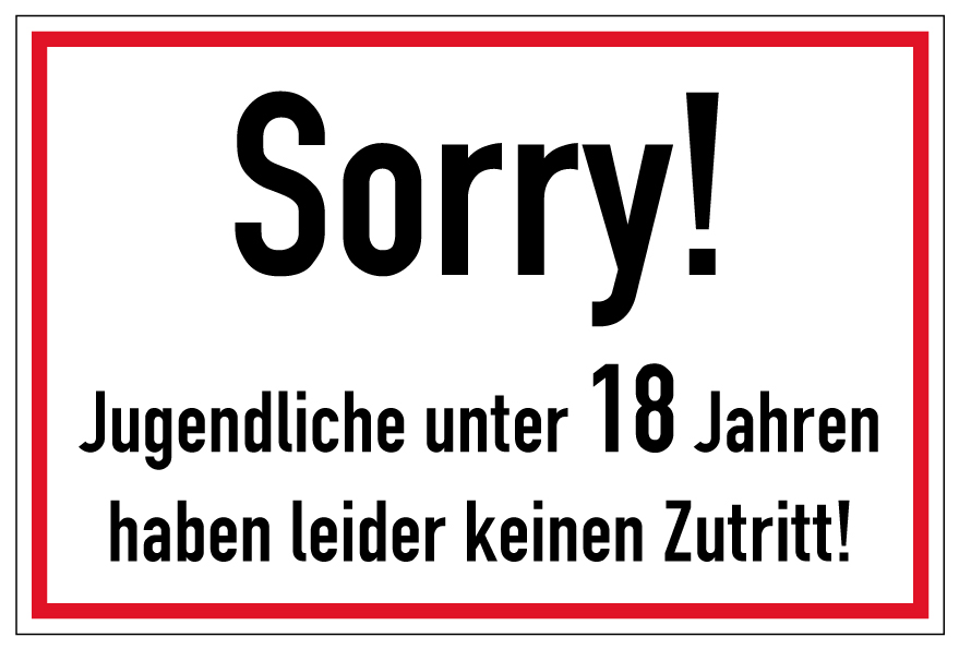 Aufkleber Hinweis JuSchG „Kein Zutrtitt unter 18 Jahre“ Etikett | 30x20 cm