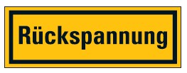 Startseite » Aufkleber / Folien / Schilder » Warnzeichen und -aufkleber » Aufkleber „Rückspannung“ Warn Etikett, signalgelb | Größe wählbar