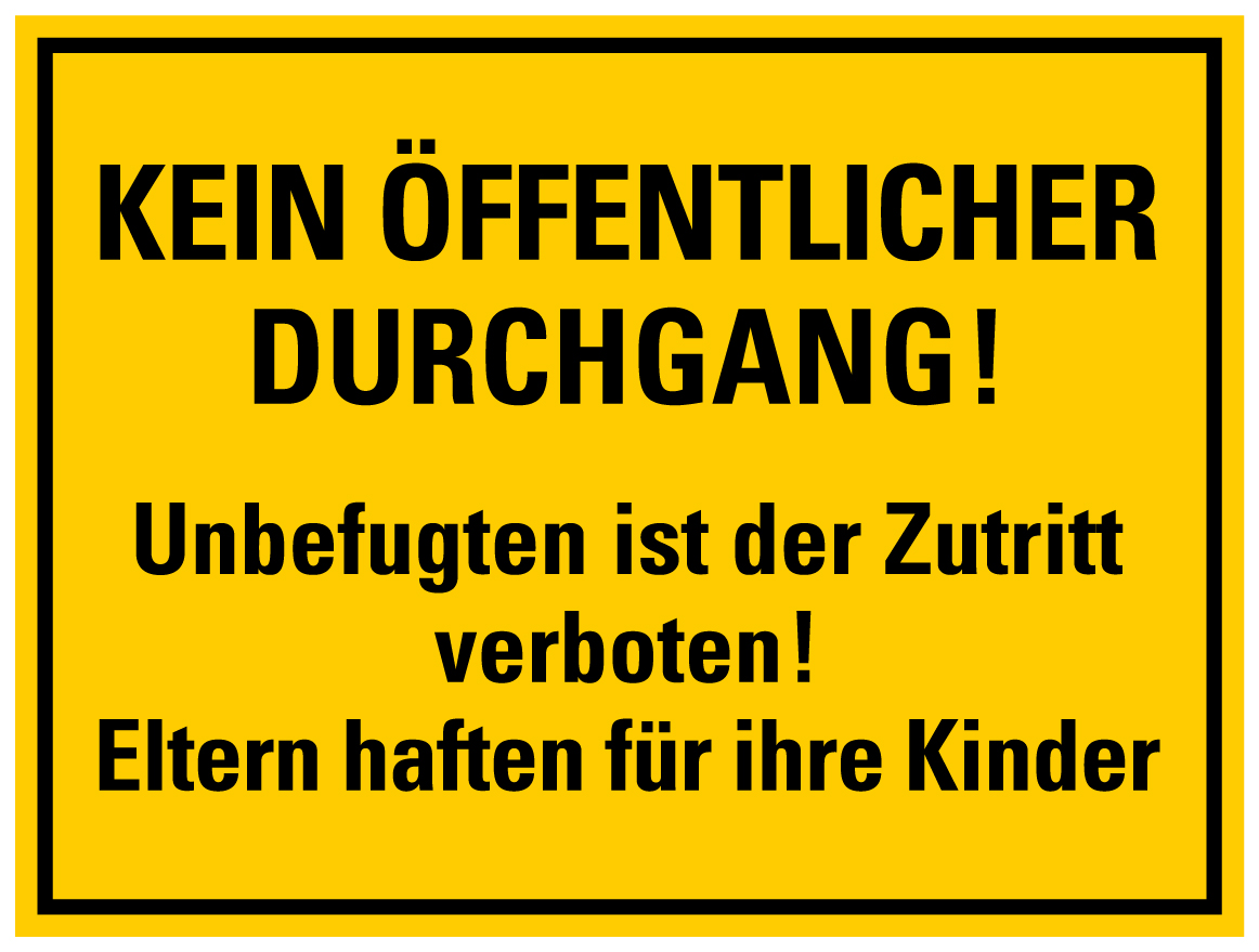 Startseite » Aufkleber / Folien / Schilder » Warnzeichen und -aufkleber » Aufkleber Verbot Warnung „Kein öffentlicher Durchgang!“ Etikett | Größe wählbar