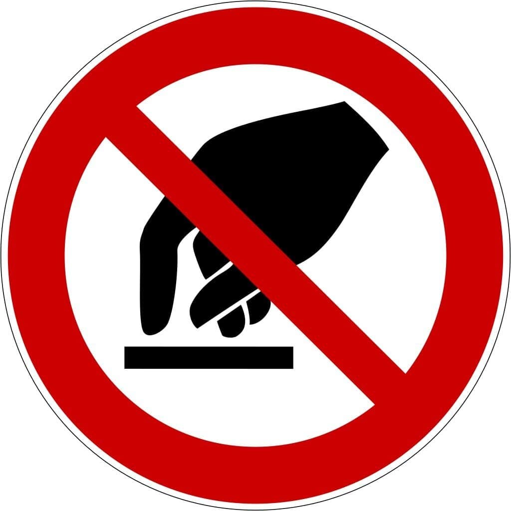 Startseite » Aufkleber / Folien / Schilder » Verbotszeichen und -aufkleber » Aufkleber Verbotszeichen „Berühren verboten“ Etikett ISO 7010, rot | Größe wählbar