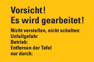 Aufkleber „Vorsicht! Es wird gearbeitet!“ Etikett ISO 7010, signalgelb | 20x12 cm