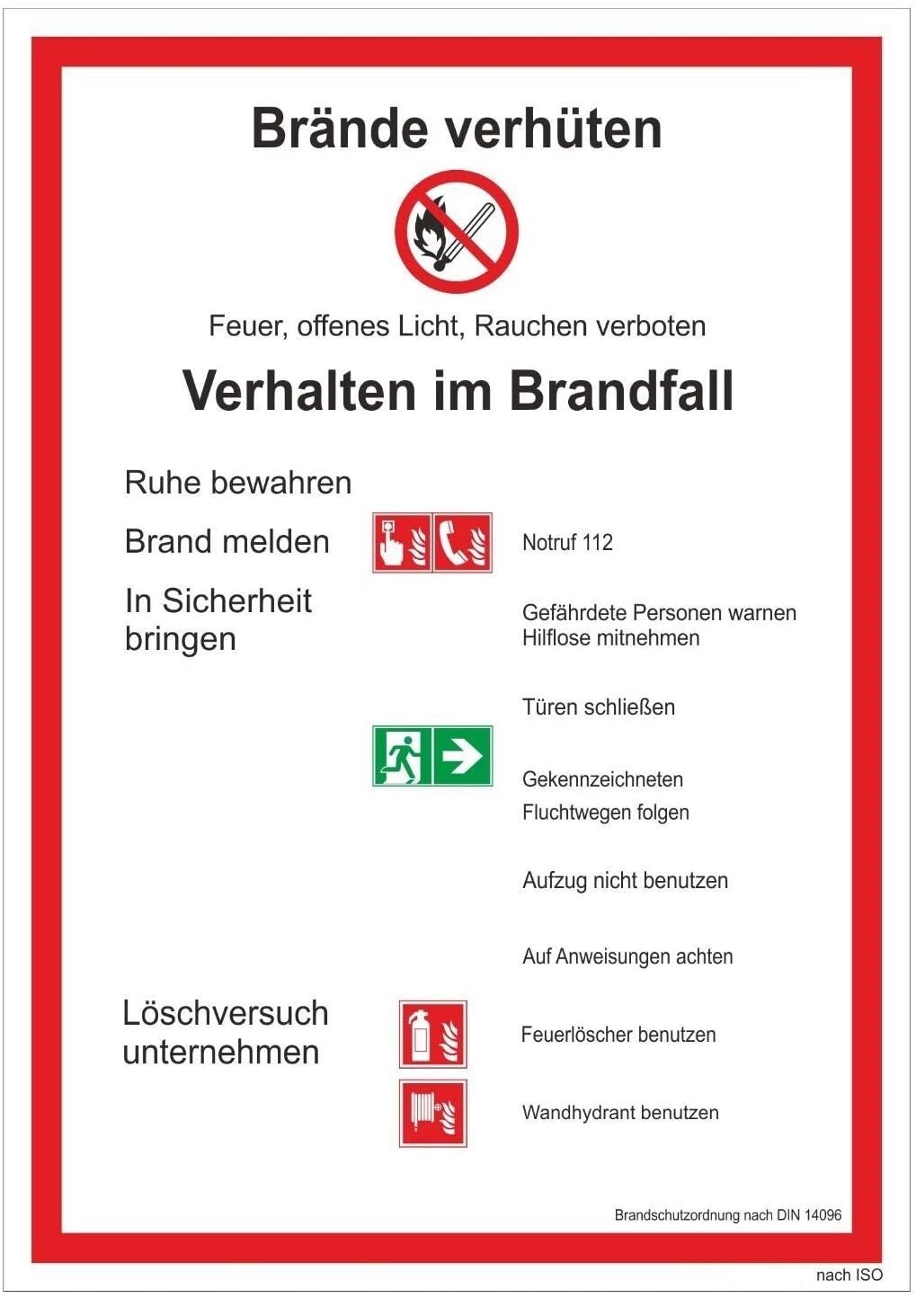 Startseite » Brandschutz » Aufkleber „Brandschutzordnung Teil A Brände verhüten“ Etikett nach DIN 14096 Aushang BSO | 21x29,7 cm